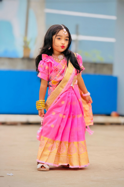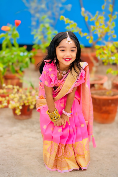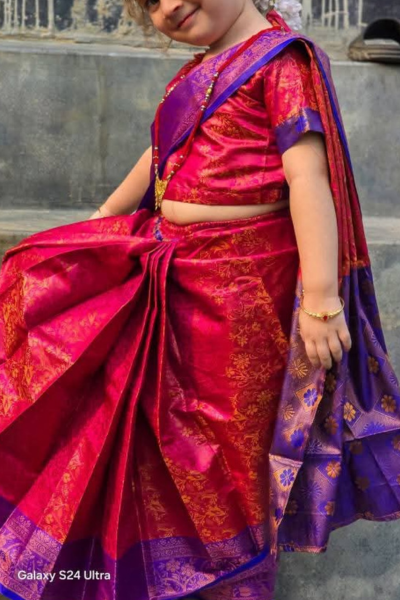 Baby Katan Ready Saree â Royal Pink with Golden Zari Work